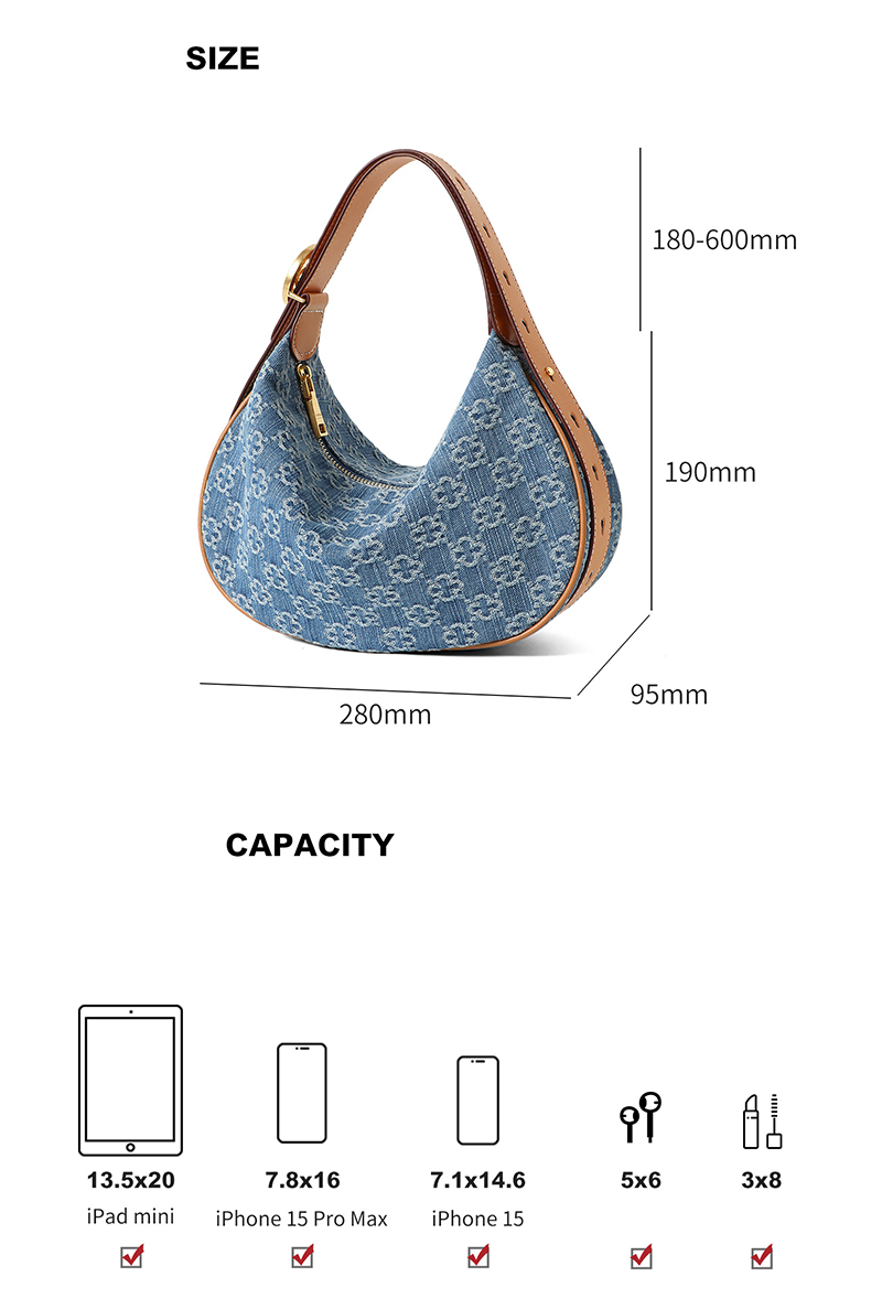 Cowboy Underarm Bag for Women Hobo Handheld Crescent Tooth Bag Shoulder Bag