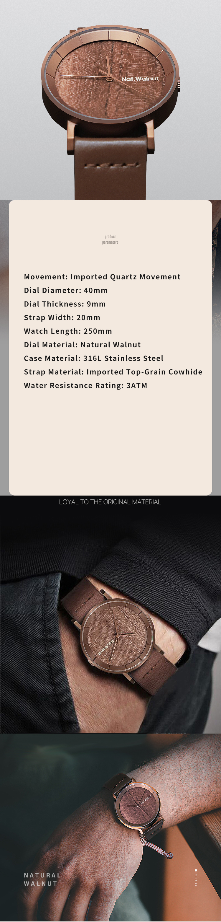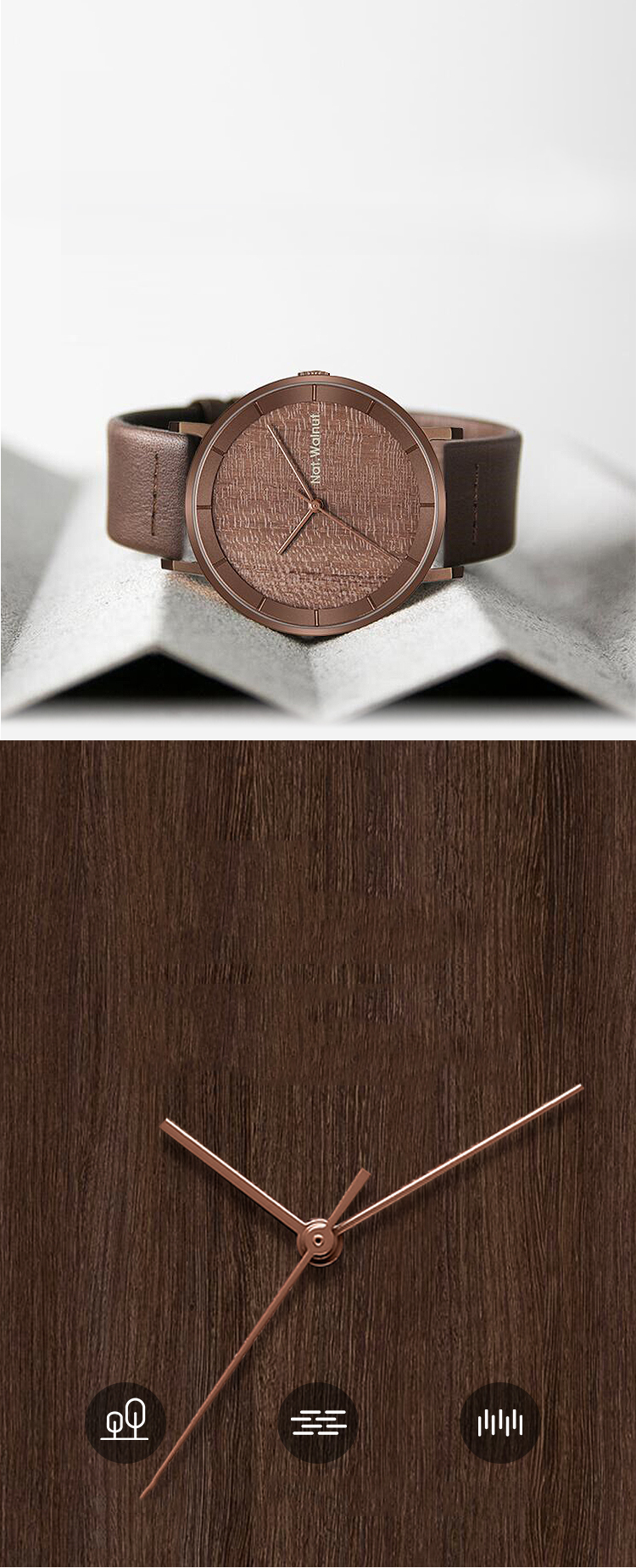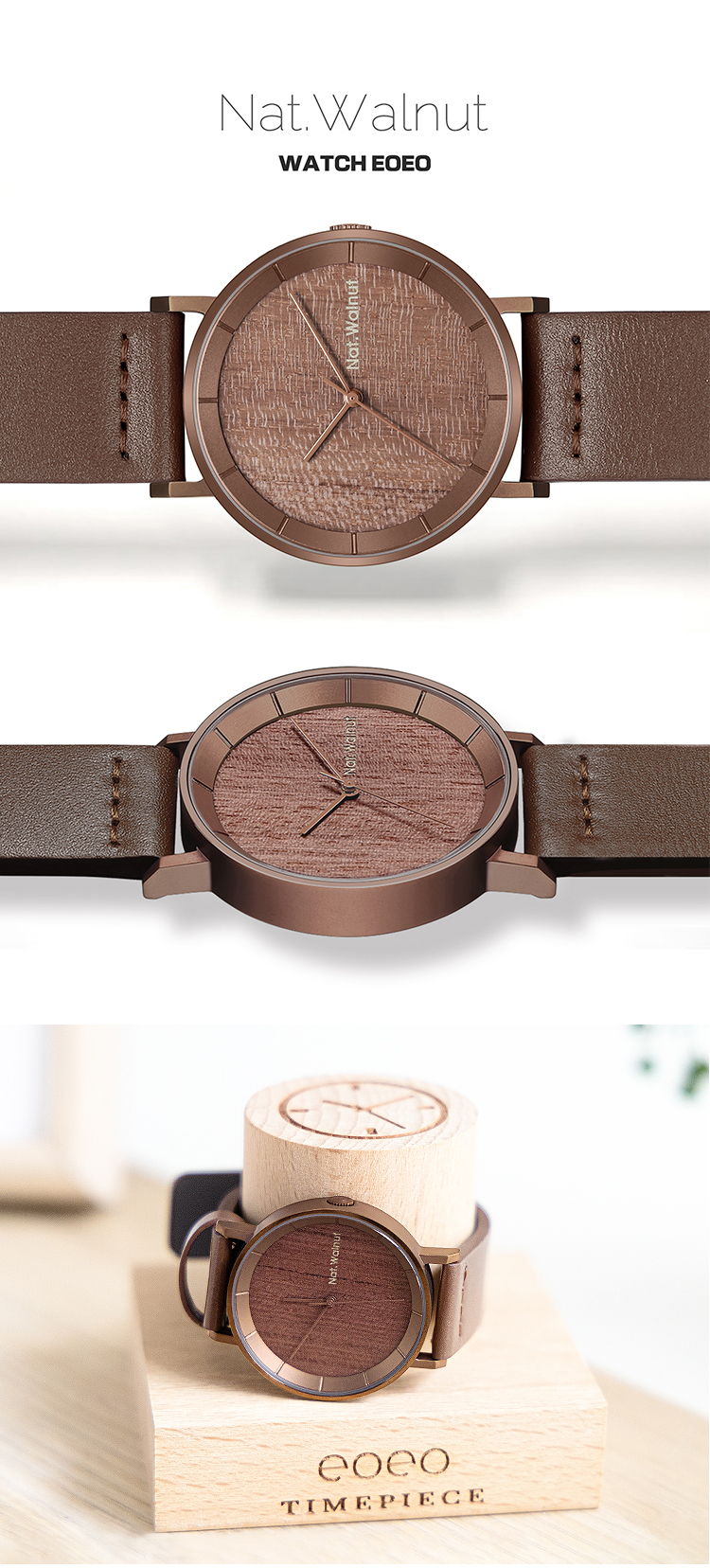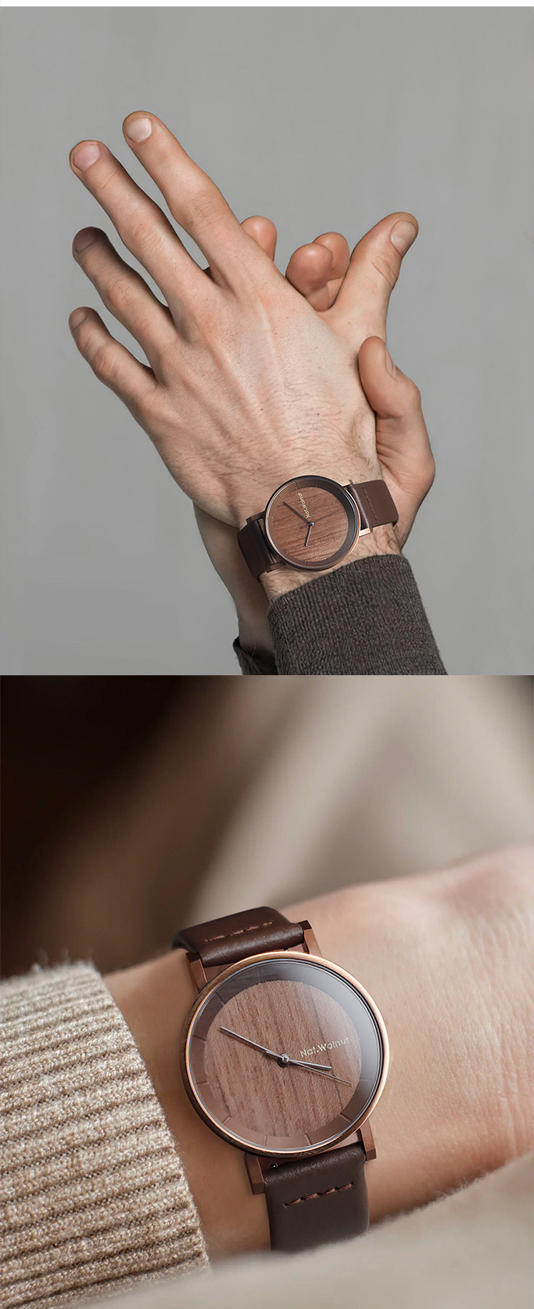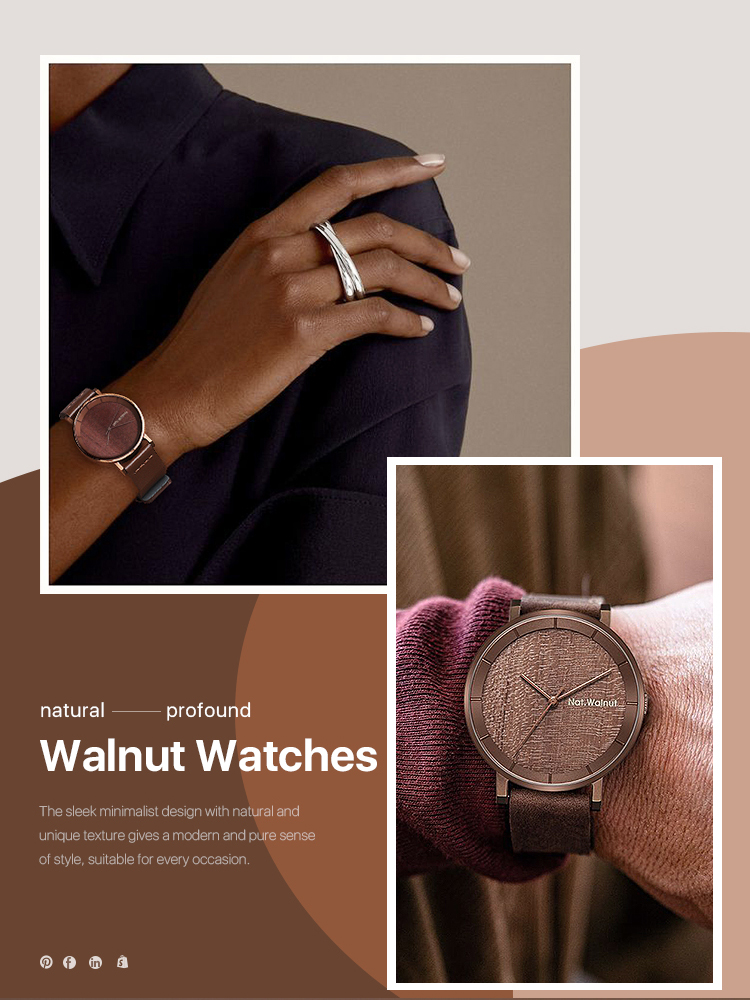 Walnut. A niche wooden watch with a simple Japanese-style retro design. It's a creative wooden men's watch